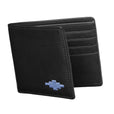 The front of the wallet features a minimalist design, highlighted by a single hand-woven diamond. This intricate detail, crafted by a skilled artisan, is made using wax-dipped saddlery threads, hand-stitched into the leather in a traditional method inspired by pampeano’s iconic belts.