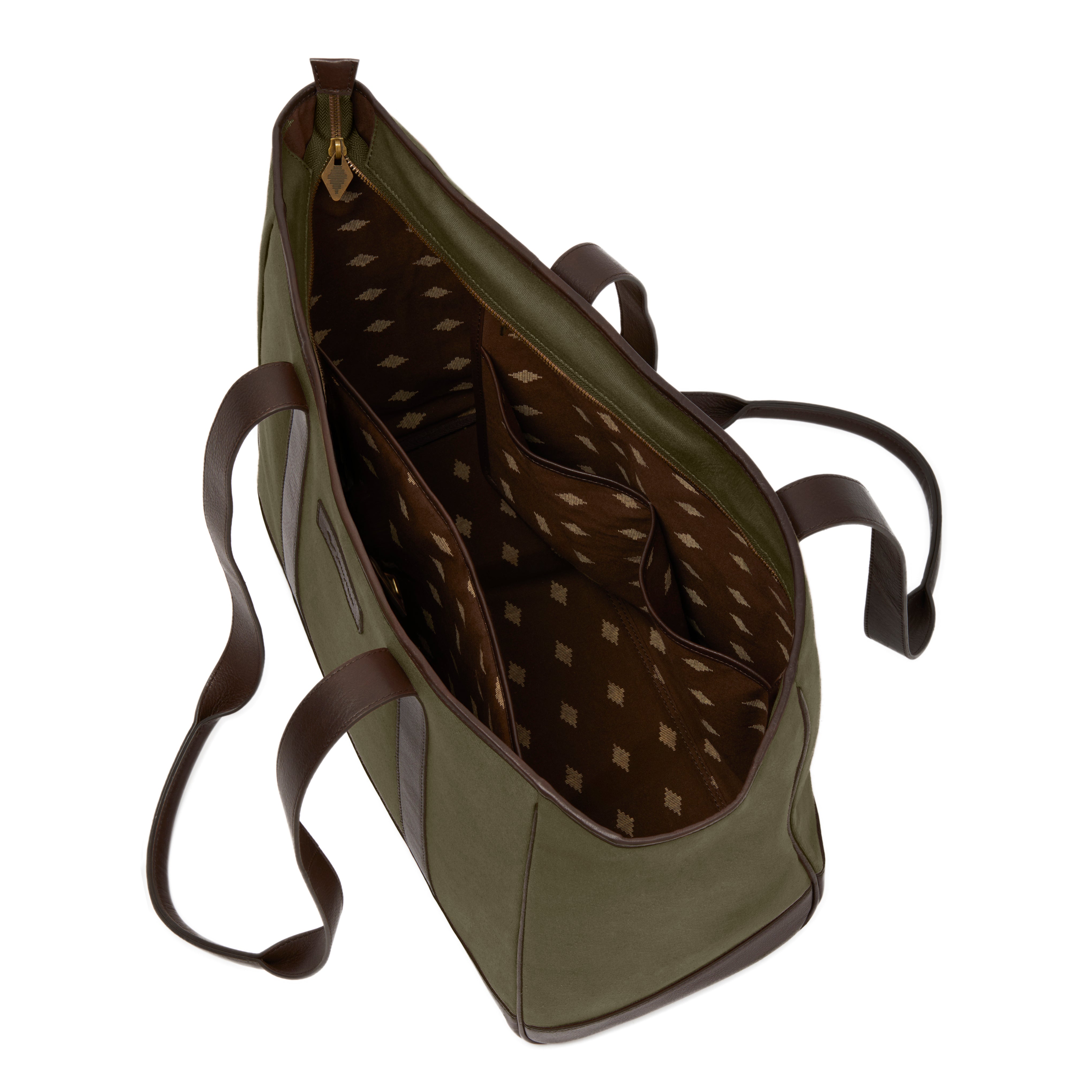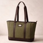 Bolso Tote Bag - Brown Leather with Forest Canvas